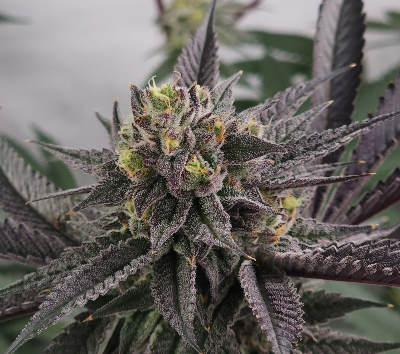 Donny Burger, from Skunk House Genetics, is a hard hitting Indica that takes you away. These powerhouse buds are for the experienced smoker, coming from GMO and Han-Solo. Left untrained her cola will be tall and pillar shaped. Starting dark green, and then turning almost entirely dark purple, including the fan leaves. Late flowering will boast a shimmering display of trichomes, that make her glisten.