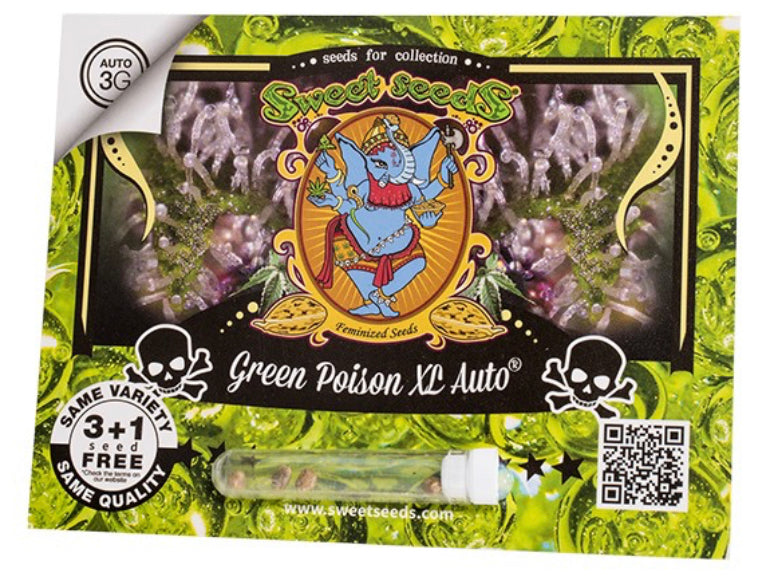 Green Poison XL Auto® (SWS71) was developed within a recurrent selection program of tall-stemmed Green Poison Auto® specimens across multiple generations. These seeds produce plants that height around 25% more than their ancestors, with a higher flower and resin production.