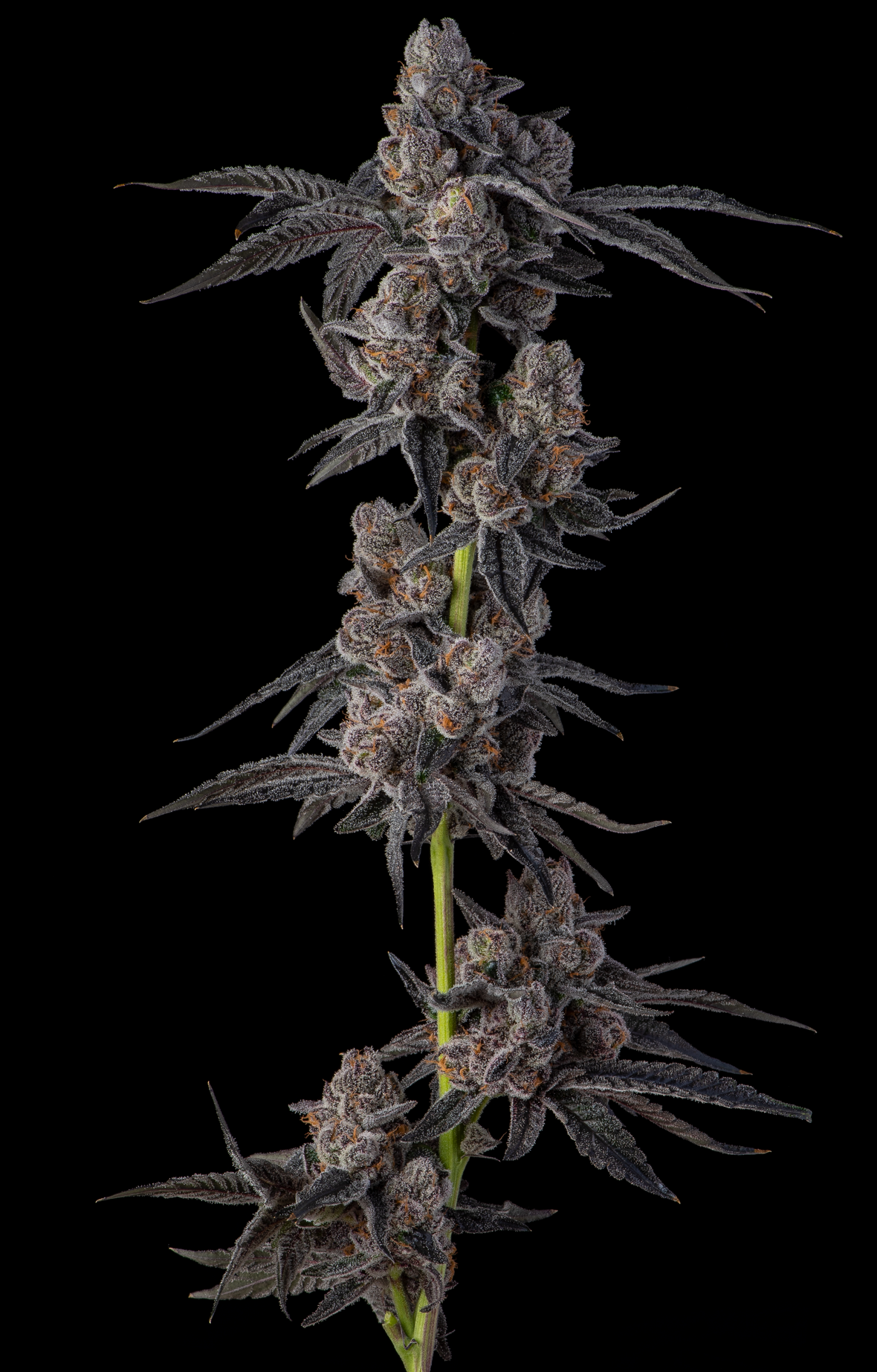 A remake from the original Grape Gas Collection - Mellowz is a crowd pleaser. When we crossed the Spritzer with the Grape Gas, what resulted was an undeniably fire combination. The buds are the epitome of what an exotic should look like - dark purple coloration bordering on black, compact shape with medium-sized calyxes, and an abundance of dense glittering trichomes. The flavor is delightful - a complex of plum, dark fruit and berries with a sweet candy finish that is definitely reminiscent of its parent Grape Gasoline.