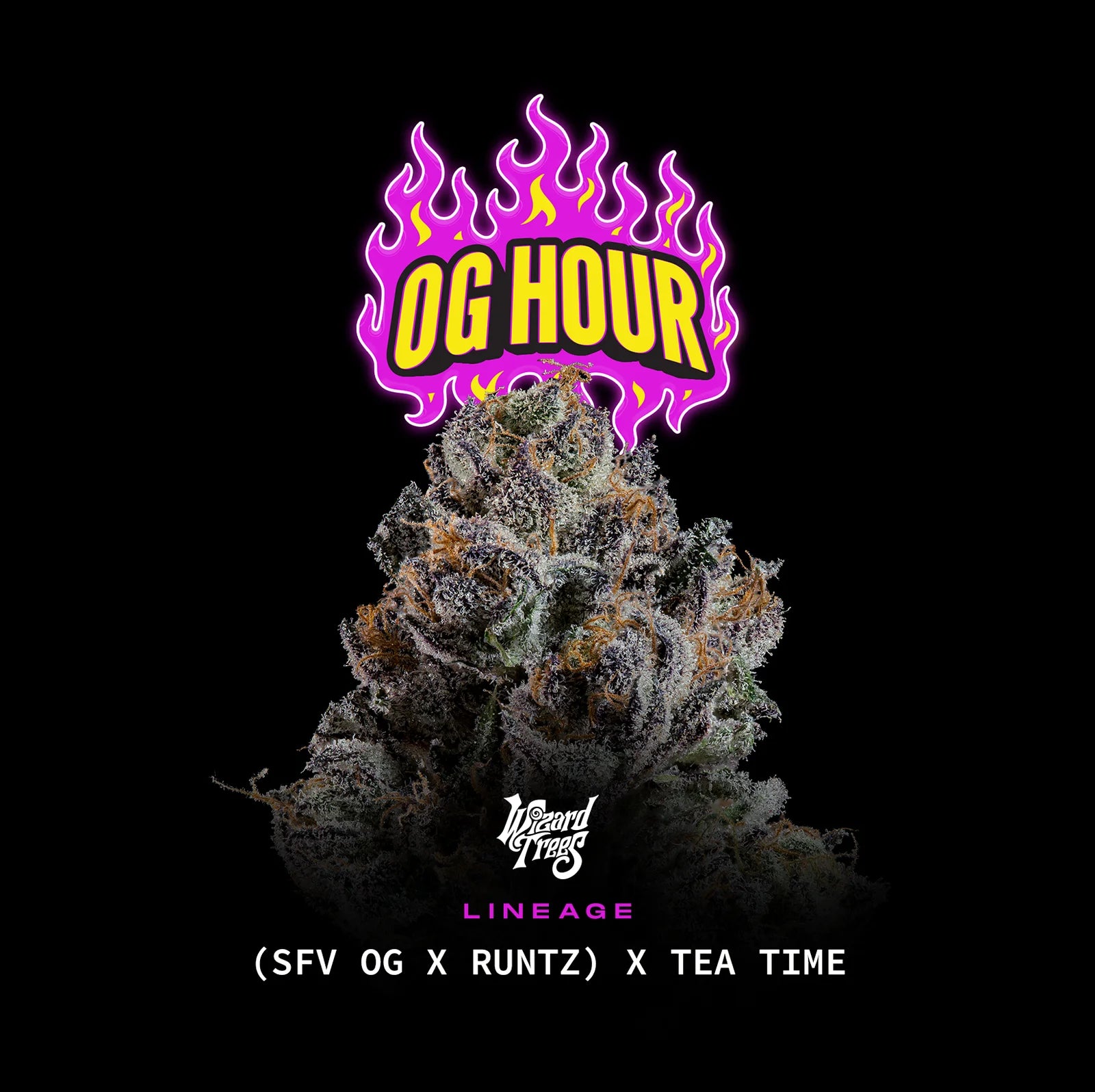 OG Hour takes a legendary LA OG and puts it on a crash course with modern candy. The result? A hybrid that hits like a sweet OG — full of frost, flavor, and density. Tea Time sharpens up the calyxes and adds color, while the SFV OG base keeps the structure upright and classic. Some phenos lean frosty and colorful, others stay rock solid with OG density. Expect loud candy gas and great resin output. It’s a balanced mix that gives you the best of both worlds — old school edge with new school candy.